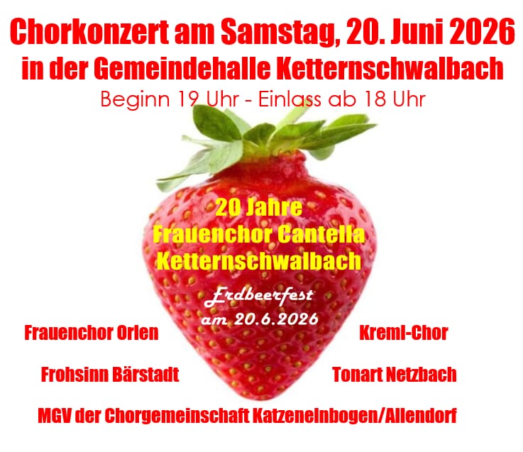 Erdbeerfest am 20.06.2026 – Chorkonzert von MGV & Cantella Ketternschwalbach